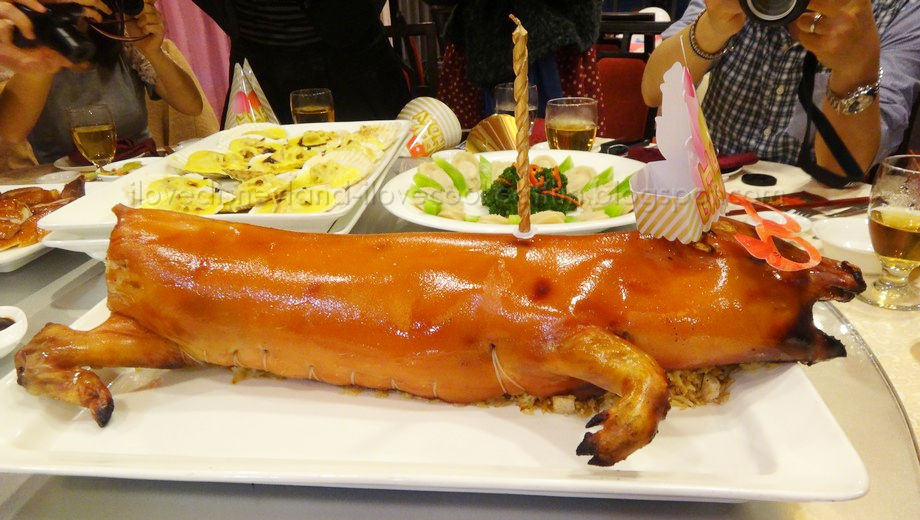 「豬..你生辰快樂! 豬..你生辰快樂! 豬..你生辰快樂! 豬..你生辰快樂! 」大家一起為壽星女唱完生日歌後......切豬典禮即將開始